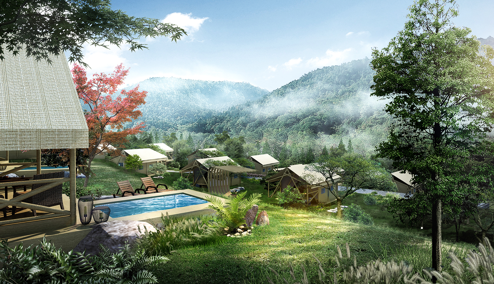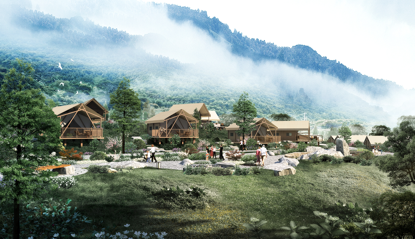 景觀設(shè)計(jì)從野奢度假酒店的“野”和“奢”兩字入手,融入荒野生態(tài)的設(shè)計(jì)理念,又要與場地相融合、與原生態(tài)相映、與當(dāng)?shù)氐拿袼罪L(fēng)情相交匯,突出當(dāng)?shù)氐奈幕黝},強(qiáng)調(diào)高品質(zhì)的自然、野奢度假,從而打造出一個(gè)具備個(gè)性與特色,使游客能夠享受到自然野趣體驗(yàn)的景觀環(huán)境。