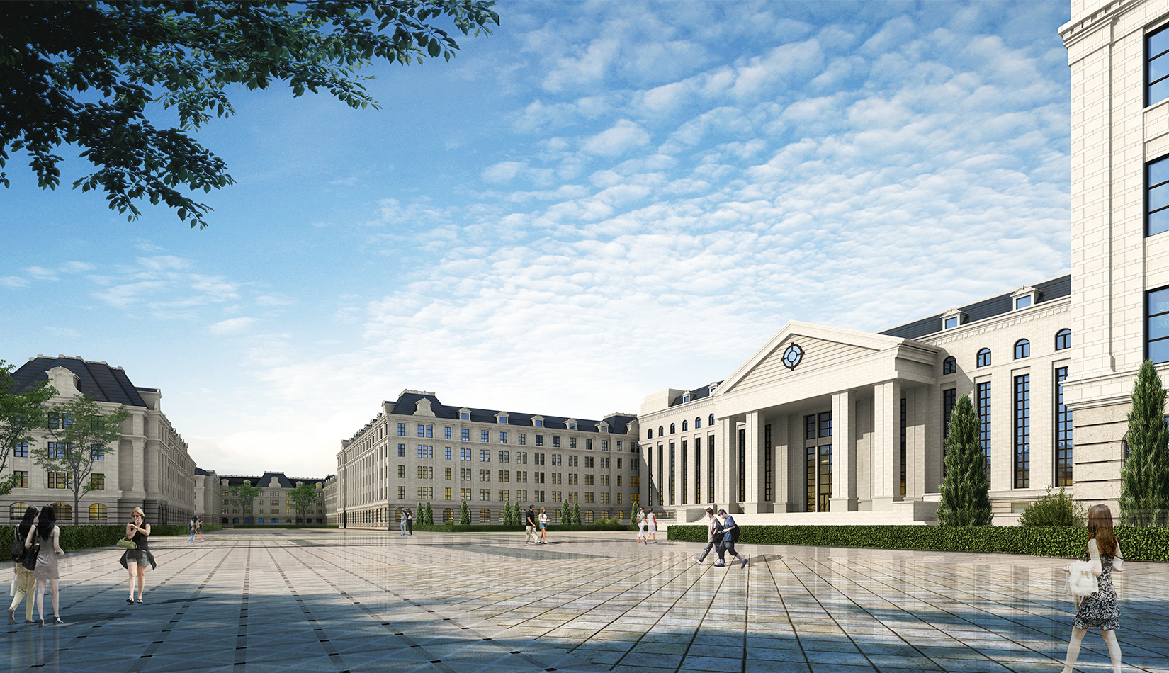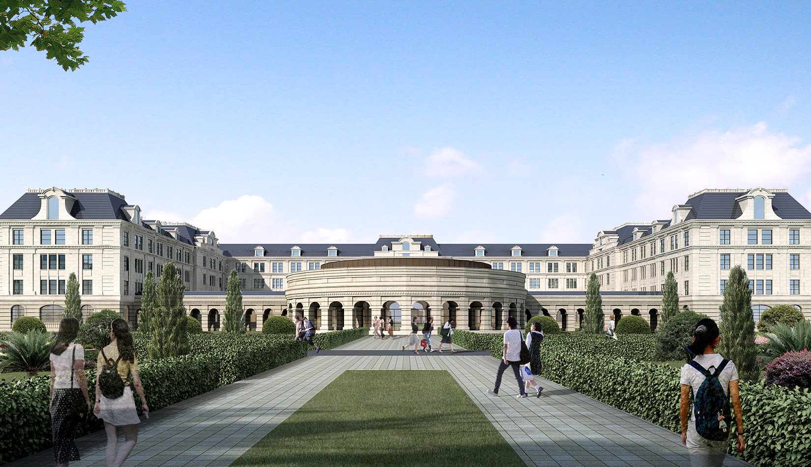 以風雨連廊組織的全室內建筑空間,以空間的半開放性達成室內外聯系共享空間目的。各學院之間既相互獨立,又有連廊進行聯系,增加架空共享空間,促進交流