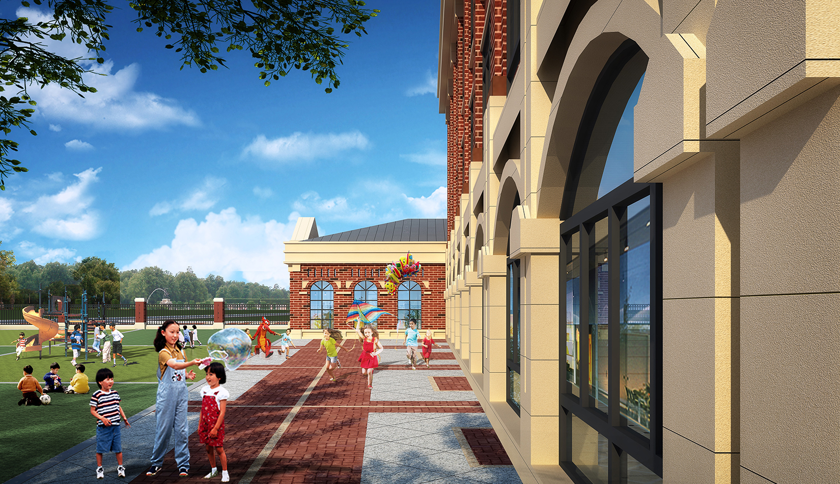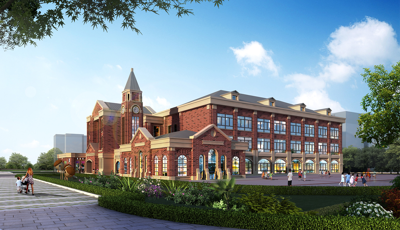 項目在設(shè)計中從幼兒特點考慮,通過活動空間、明快色彩以及建筑造型的展示,意在創(chuàng)造符合幼兒心理的童話世界。